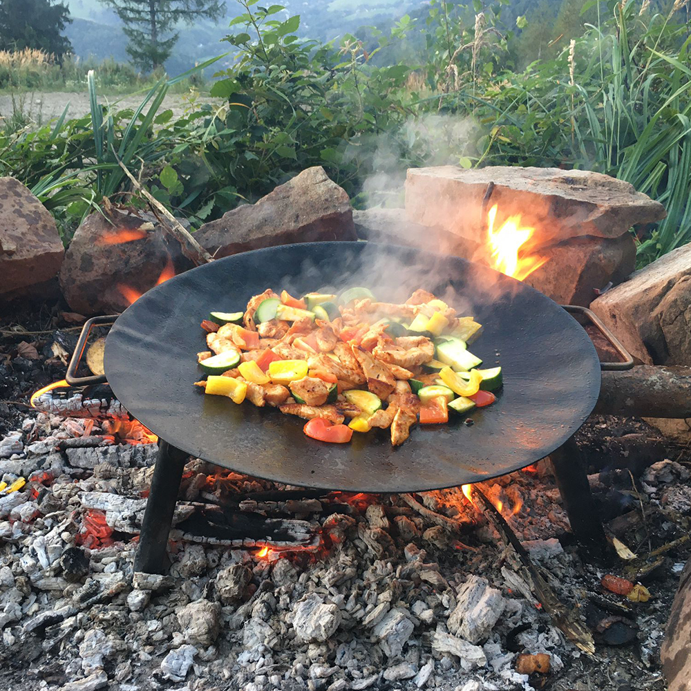 Mit diesem Faltgrill können Sie am Lagerfeuer braten, grillen oder kochen.