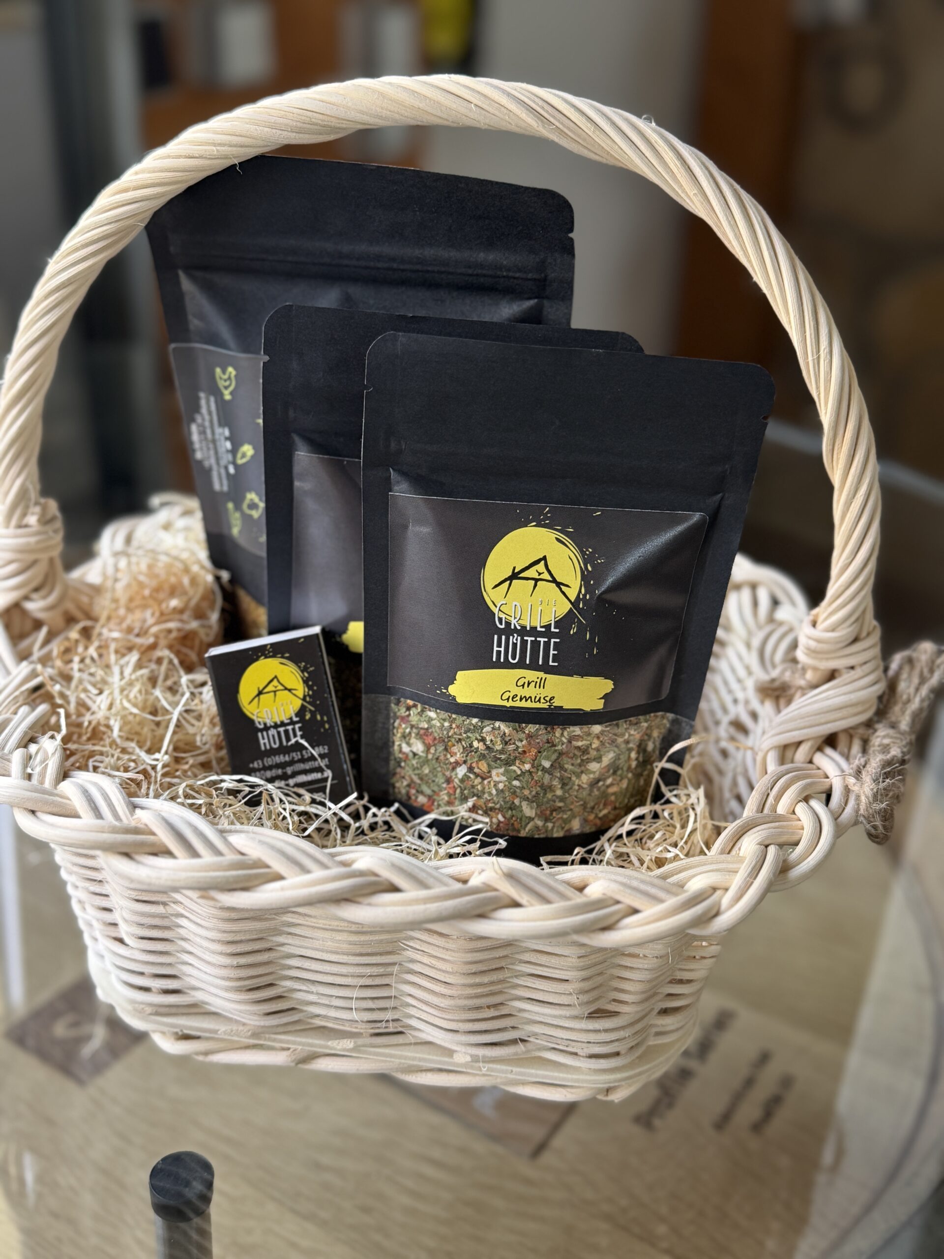 Der Geschenkkorb kann individuell nach Kundenwunsch zusammenstellt werden. Besonders beliebt sind hierbei unsere Gewürze. Ebenfalls können Küchenhelfer, Gutscheine oder Artikel wie z.B. Handschuhe beigelegt werden.