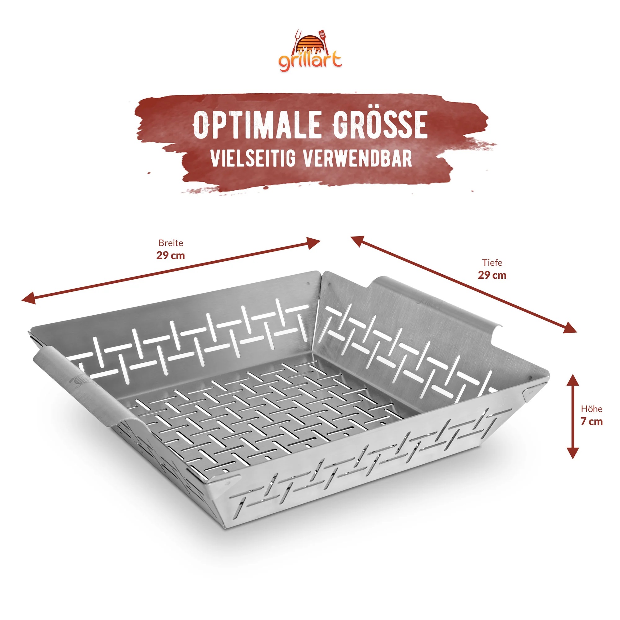 Hervorragend geeignet am Gasgrill, Holzkohlegrill und auch im Backofen als Gemüsekorb, Grillkorb für Fisch und Meeresfrüchte – durch die verschiedenen Größen und Varianten auch ideal als Grillwok einsetzbar. Eine ideale nachhaltige Alternative zu Einweg-Aluschalen!