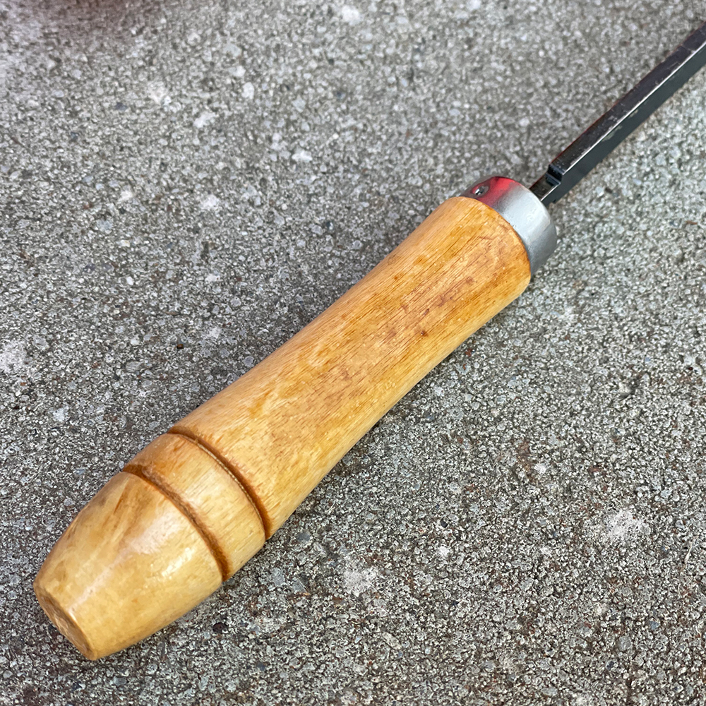 Material: Kohlenstoffstahl unbehandelt, Griff aus Holz