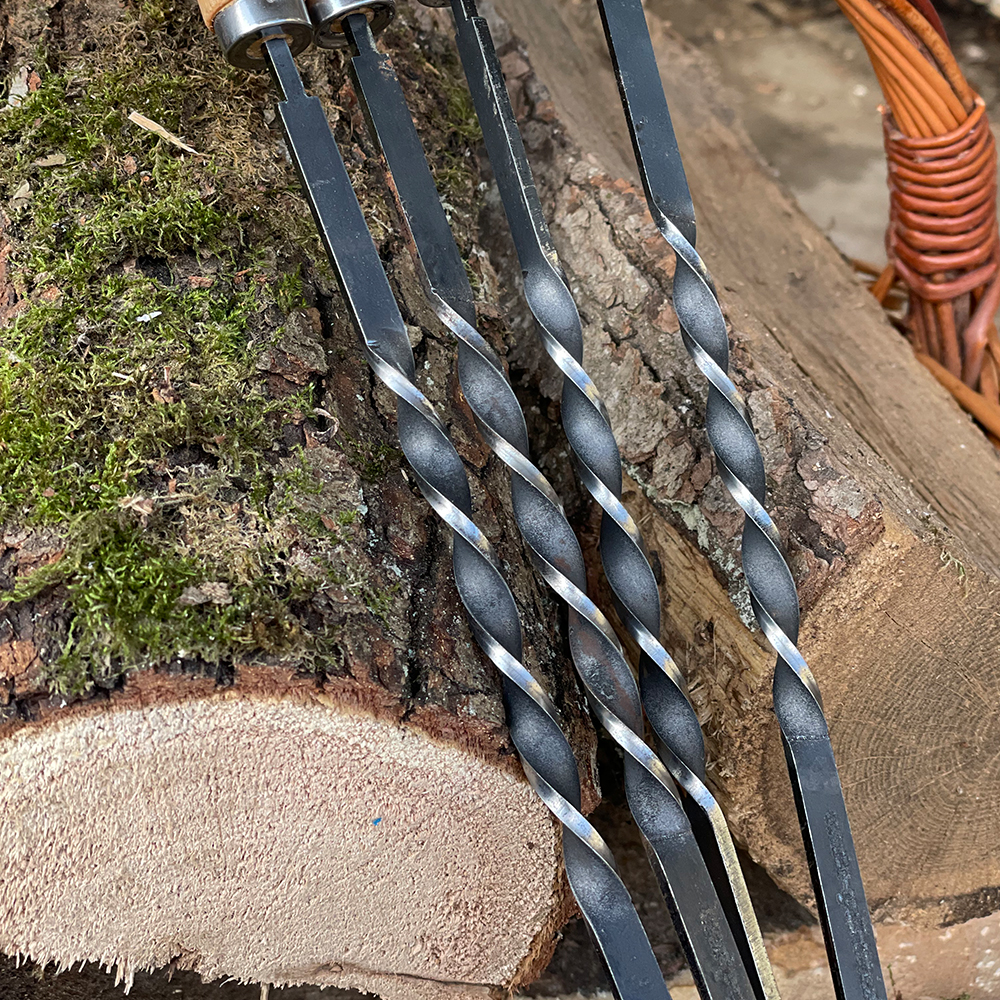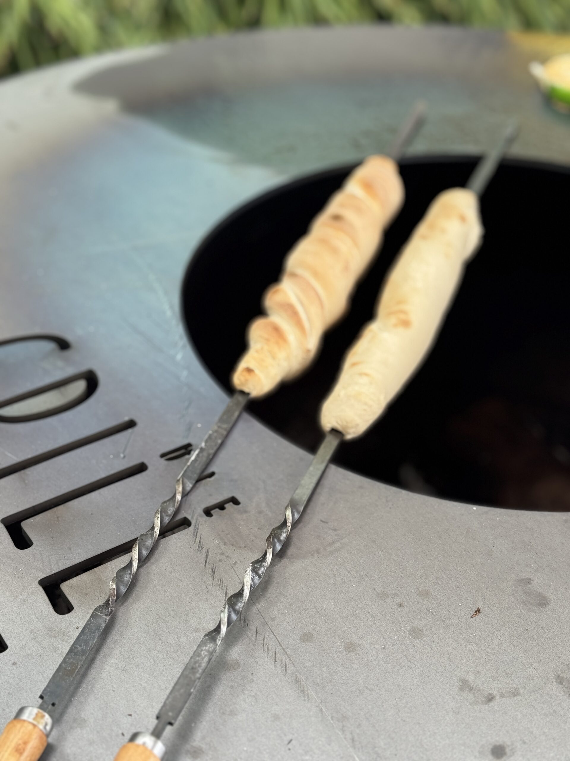 Mit unseren gedrehten Grillspießen „Schaschlik“ gelingt die Zubereitung von Gemüse und Fleischspießen leicht auf dem Grill. Auch Steckerlbrot lässt sich einfach zubereiten. Den Teig umwickeln und auf geht’s über die Feuerschale.