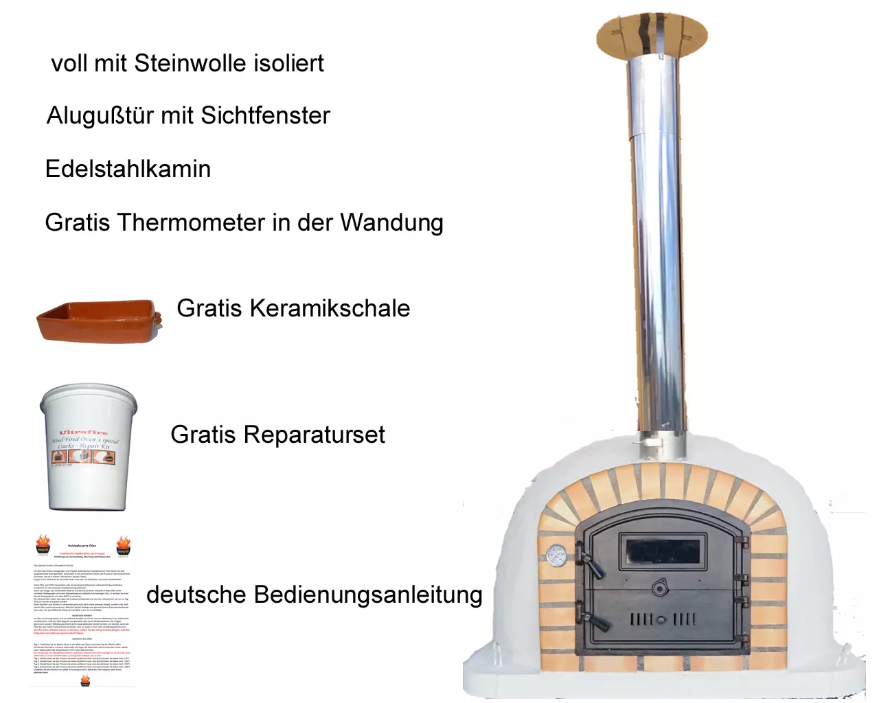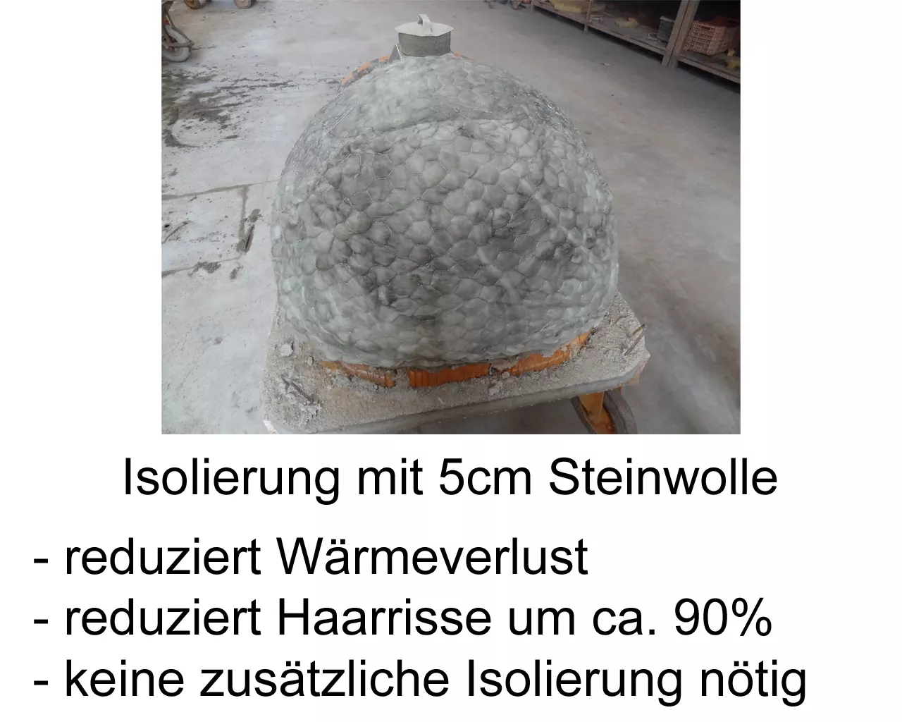 Der Steinbackofen besteht aus feuerfesten Steinen und hochtemperaturfestem Mörtel. Für eine optimale Isolierung ist der Pizzaofen mit einer Dämmschicht aus Steinwolle versehen.