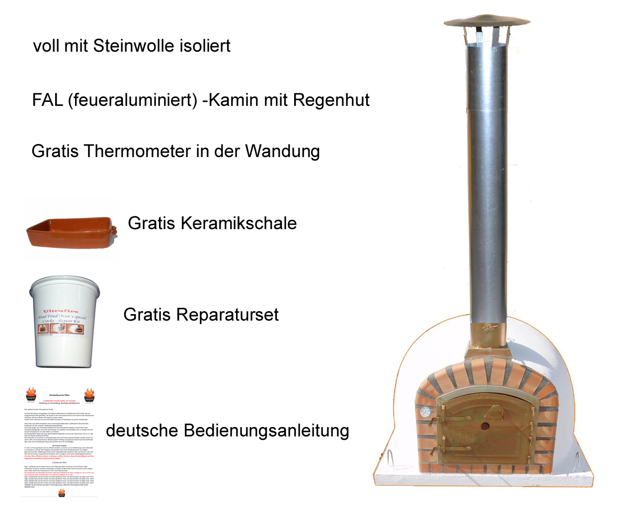 - Holzbefeuerter Pizzaofen Lissabon inklusive FAL-Kaminrohr und Regenhut