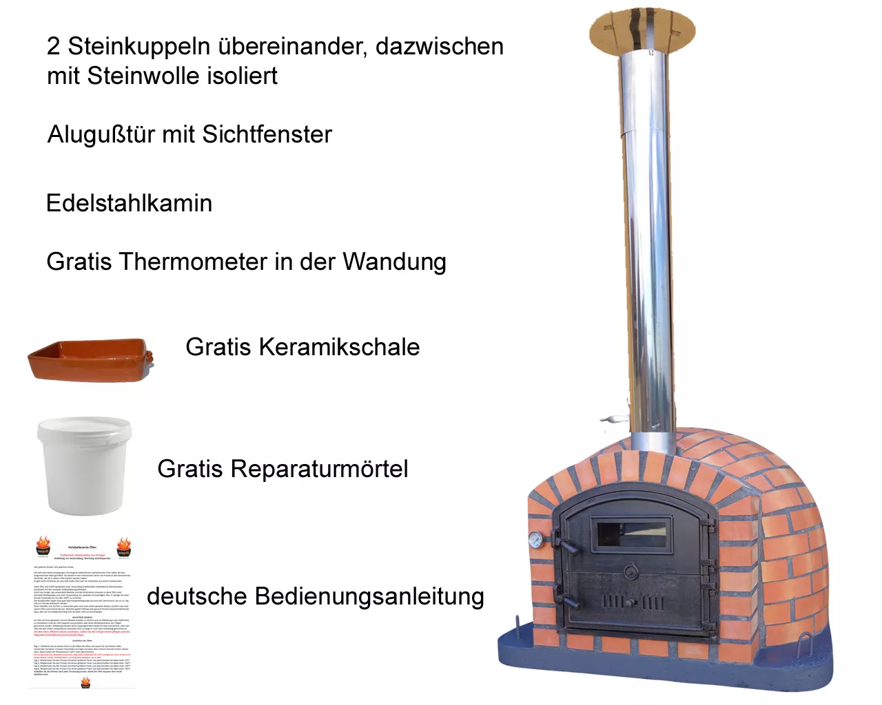 Holzbackofen „Luca“ AL mit Gußtüre und Sichtfenster 110x110cm