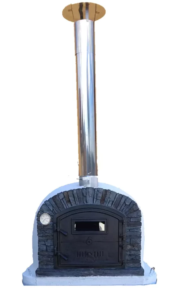 Holzbackofen „Ventura Black“ AL mit Gußtüre und Sichtfenster 100×100
