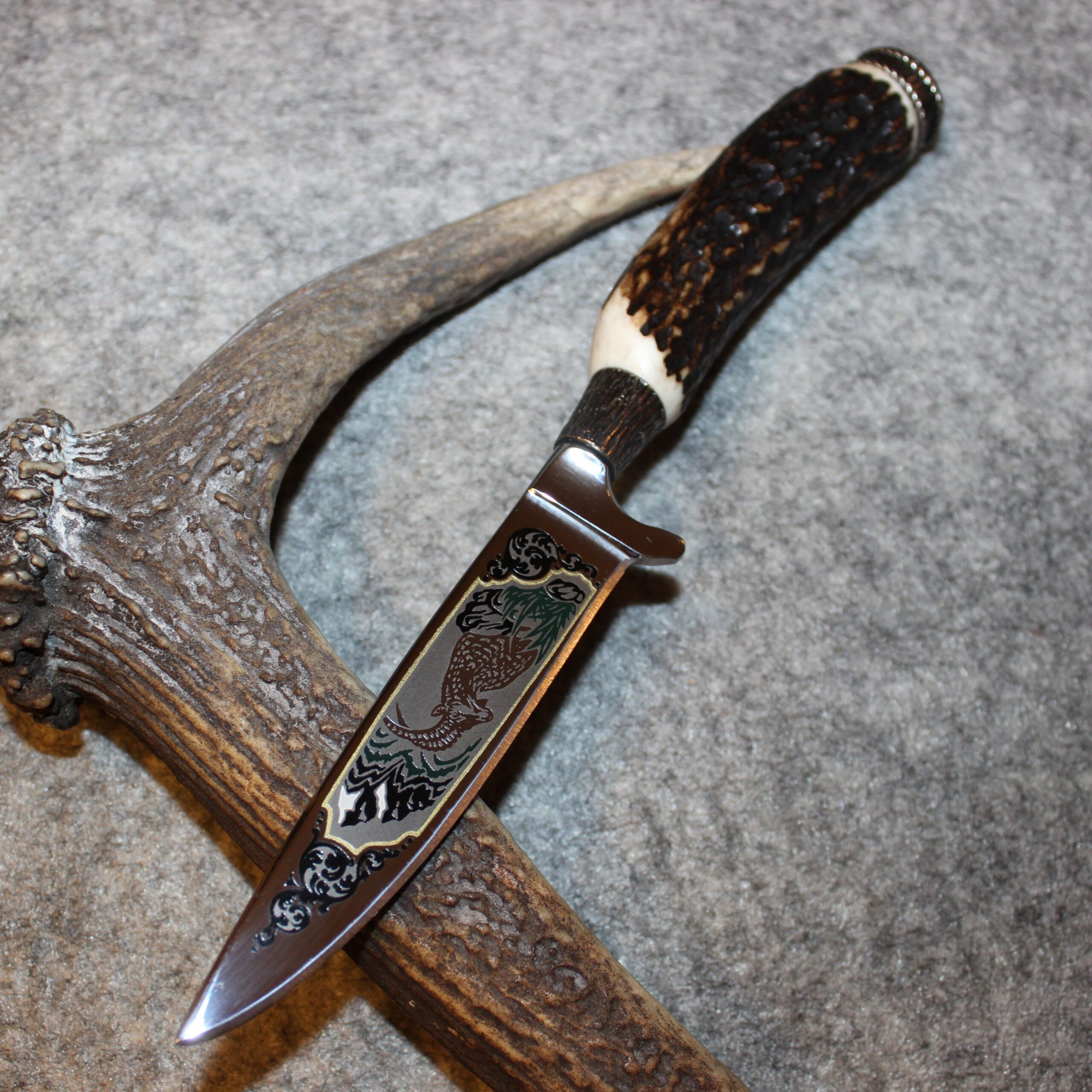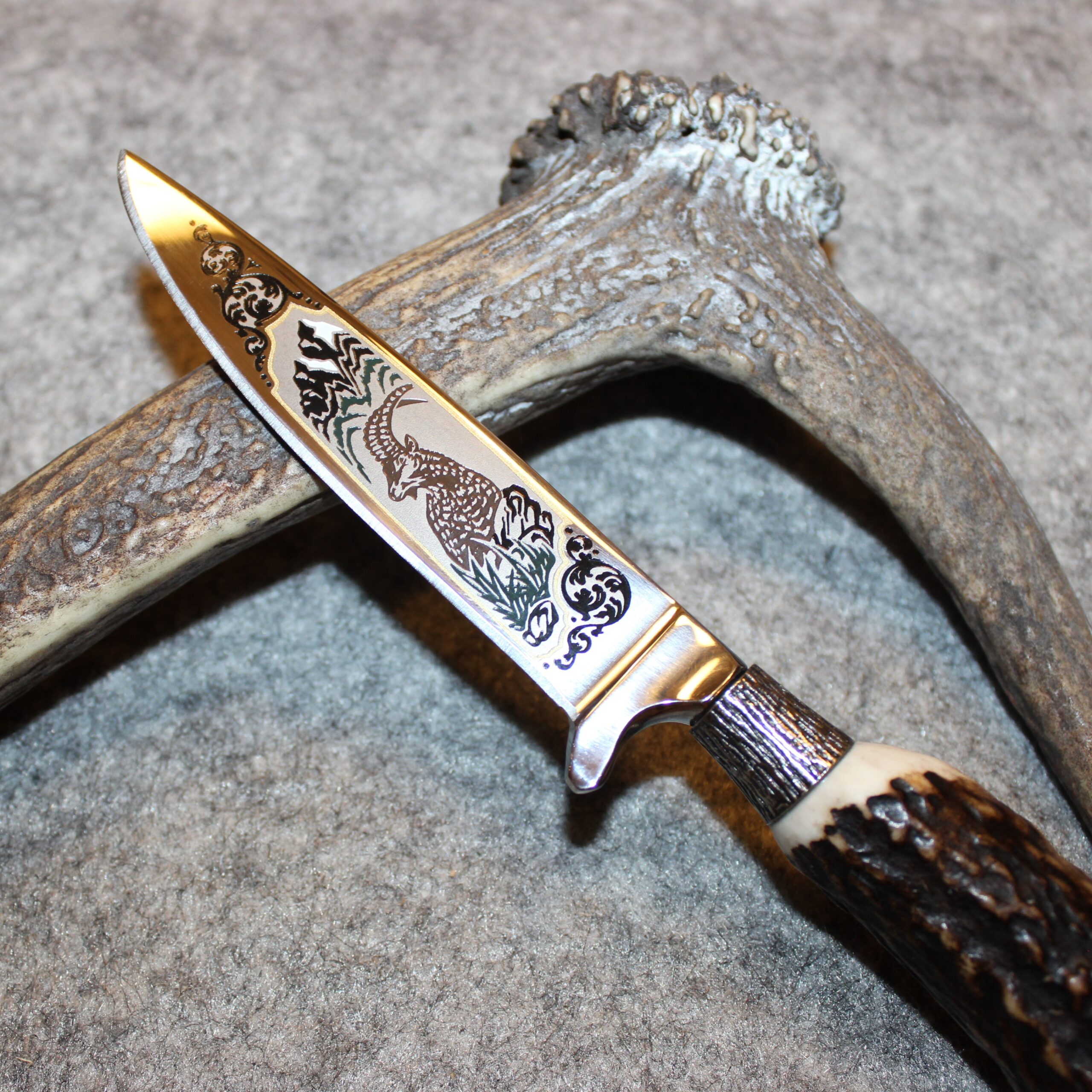 Klinge: Poliert, mit tiefengeätztem Jagdmotiv – Steinbock
