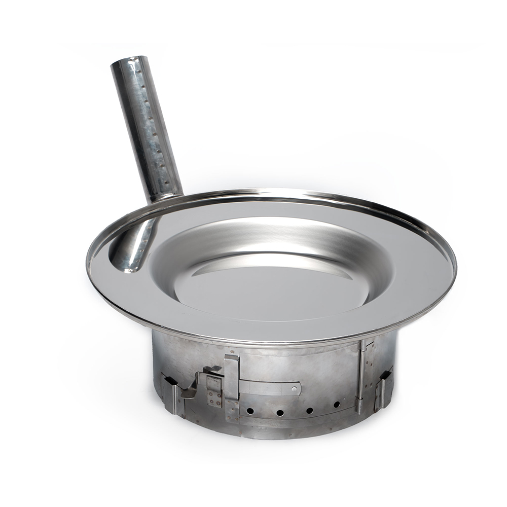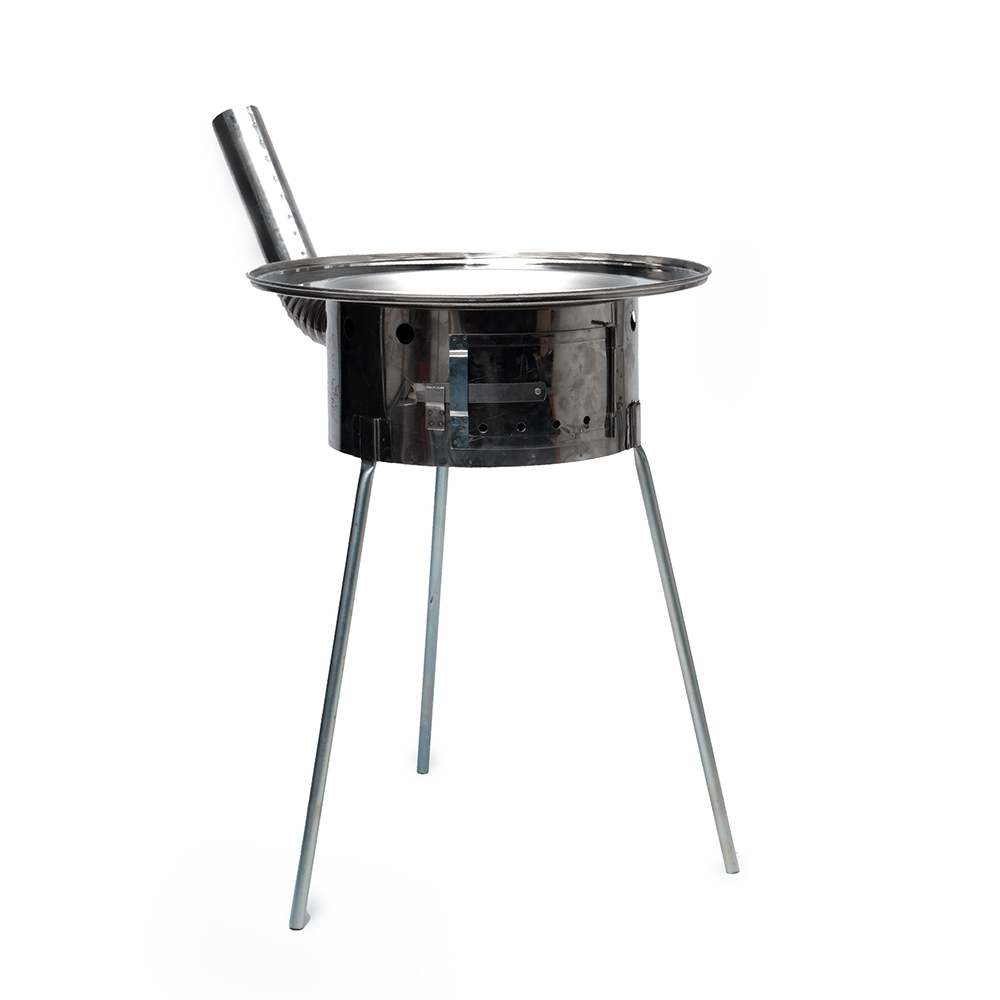 Das Set besteht aus Ofen, 3 Füßen, einem Rauchrohr und einer Platte.