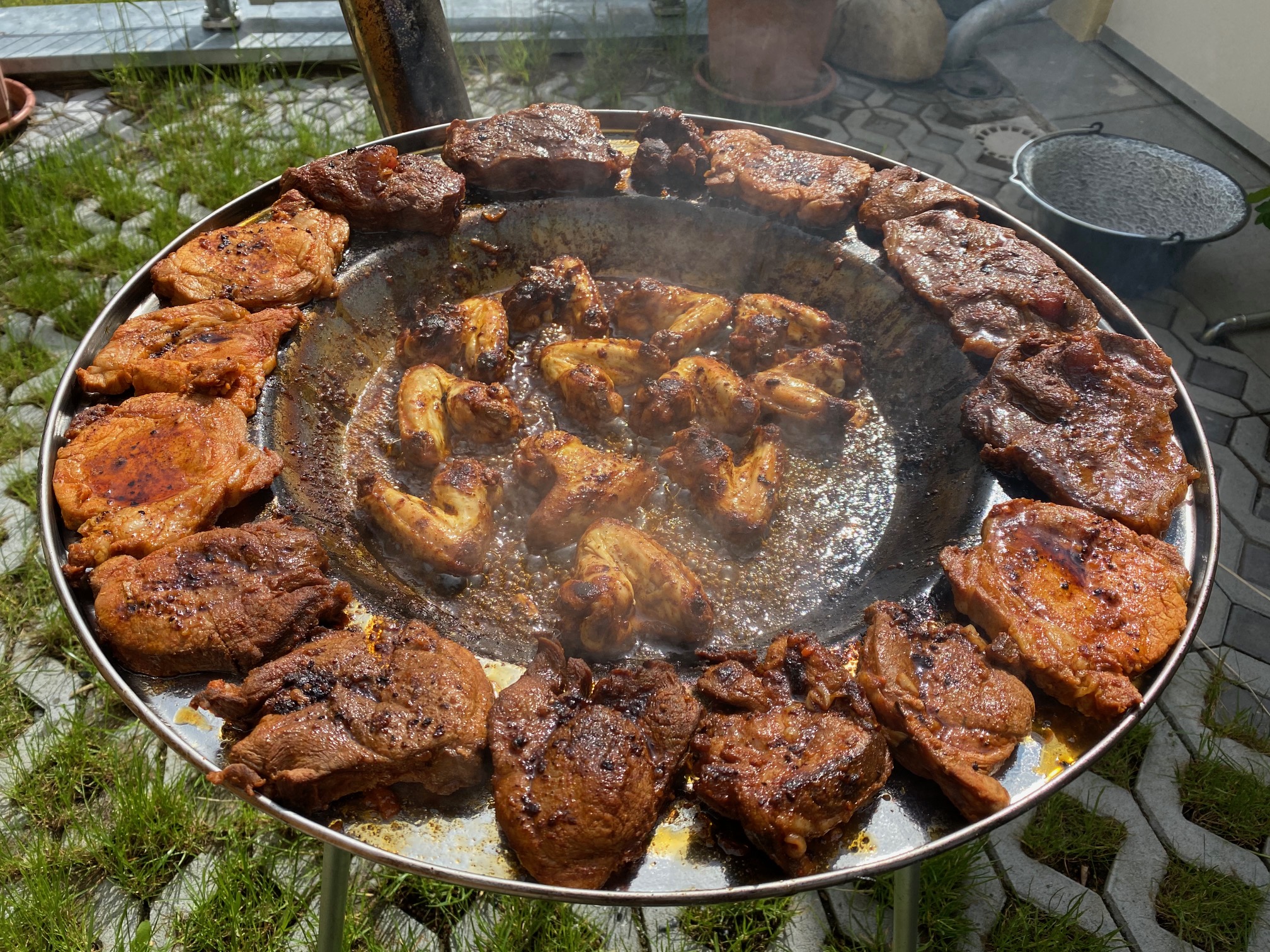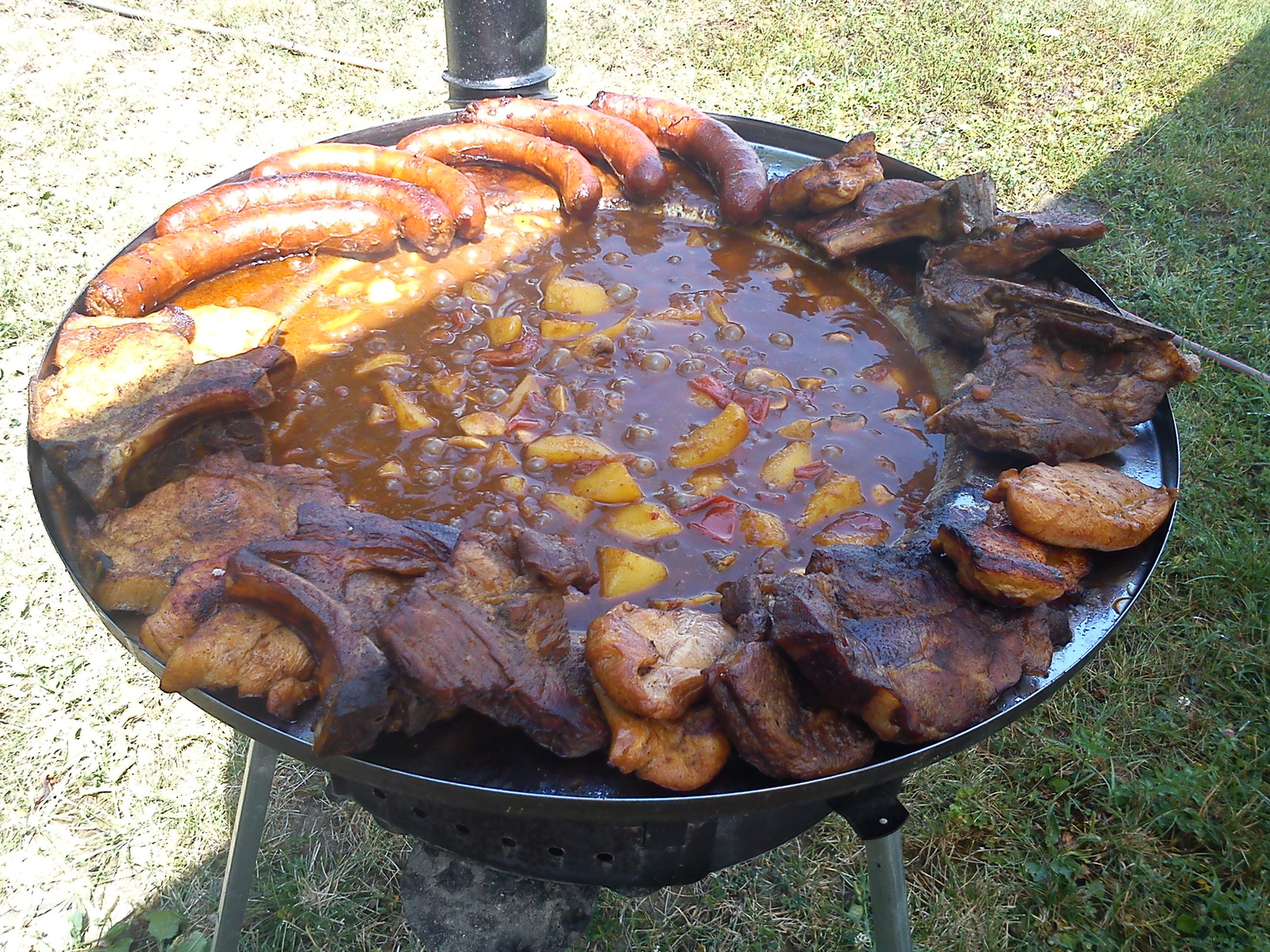 Durch die spezielle Platte hat man zwei unterschiedliche Bereiche, in denen man gleichzeitig grillen bzw. schmoren kann. Beheizt wird die Kotlovina mit Holz oder auch Kohle.