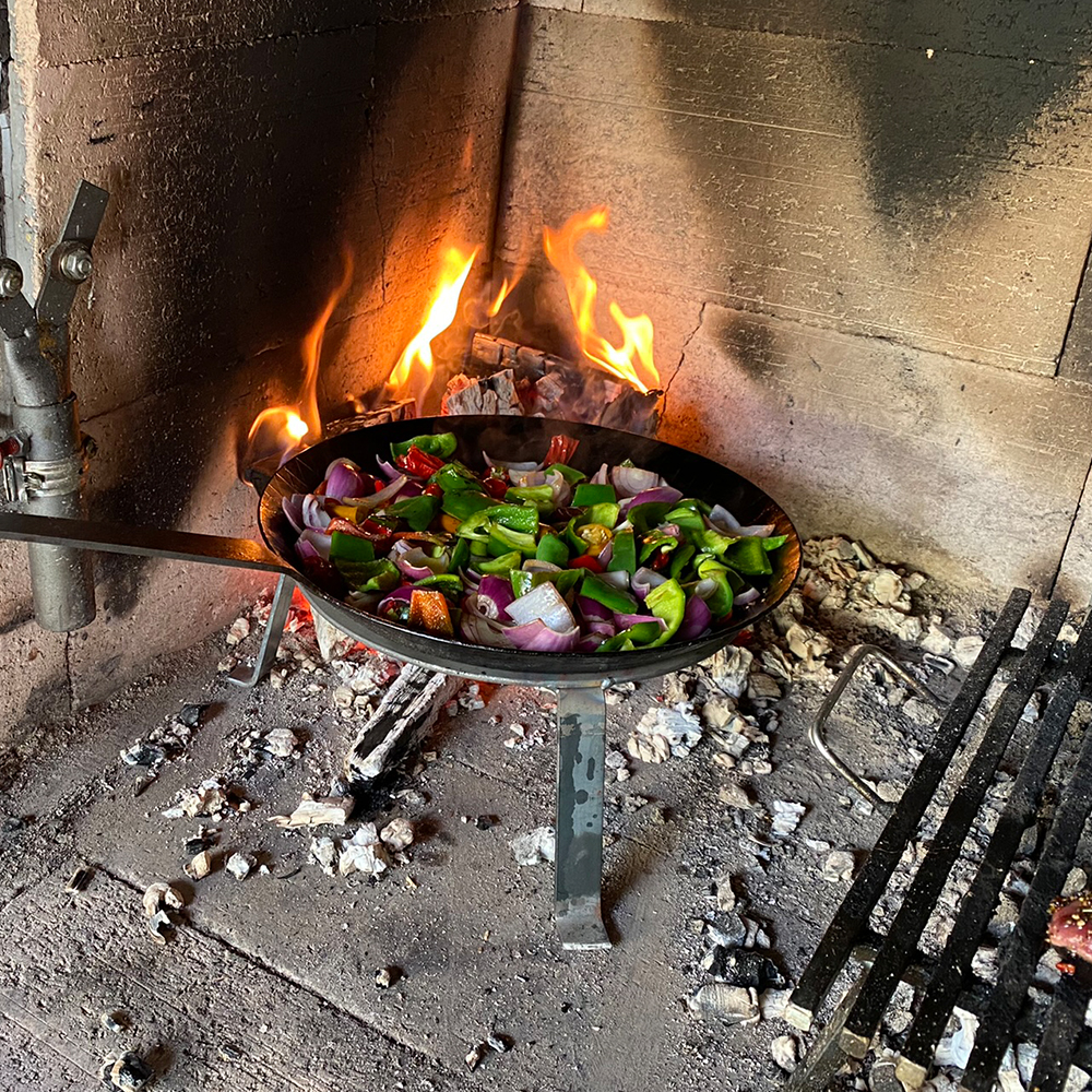 Der Pfannenknecht aus Kohlenstoffstahl ist die perfekte Ergänzung für jede Outdoorküche und eignet sich perfekt als sichere Standfläche für schwere Töpfe und Pfannen über dem Feuer.