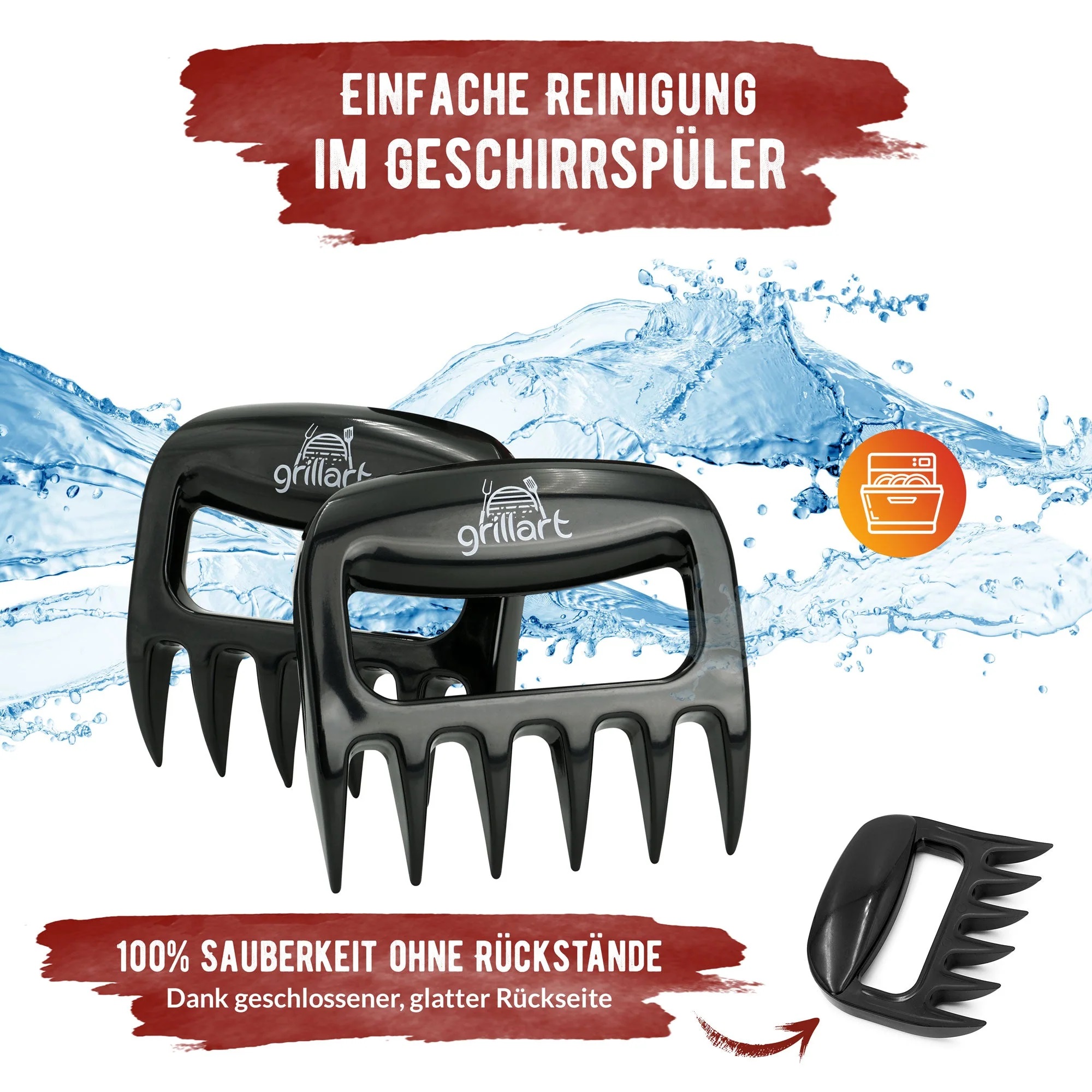 Einfach und praktisch – zwei normale Küchengabeln sind meist unhandlich oder verbiegen sich – dies ist mit den Krallen nicht der Fall: Ein ergonomischer Griff und enorm stabile Krallen machen das Zerrupfen des Pulled Porks zum Kinderspiel.